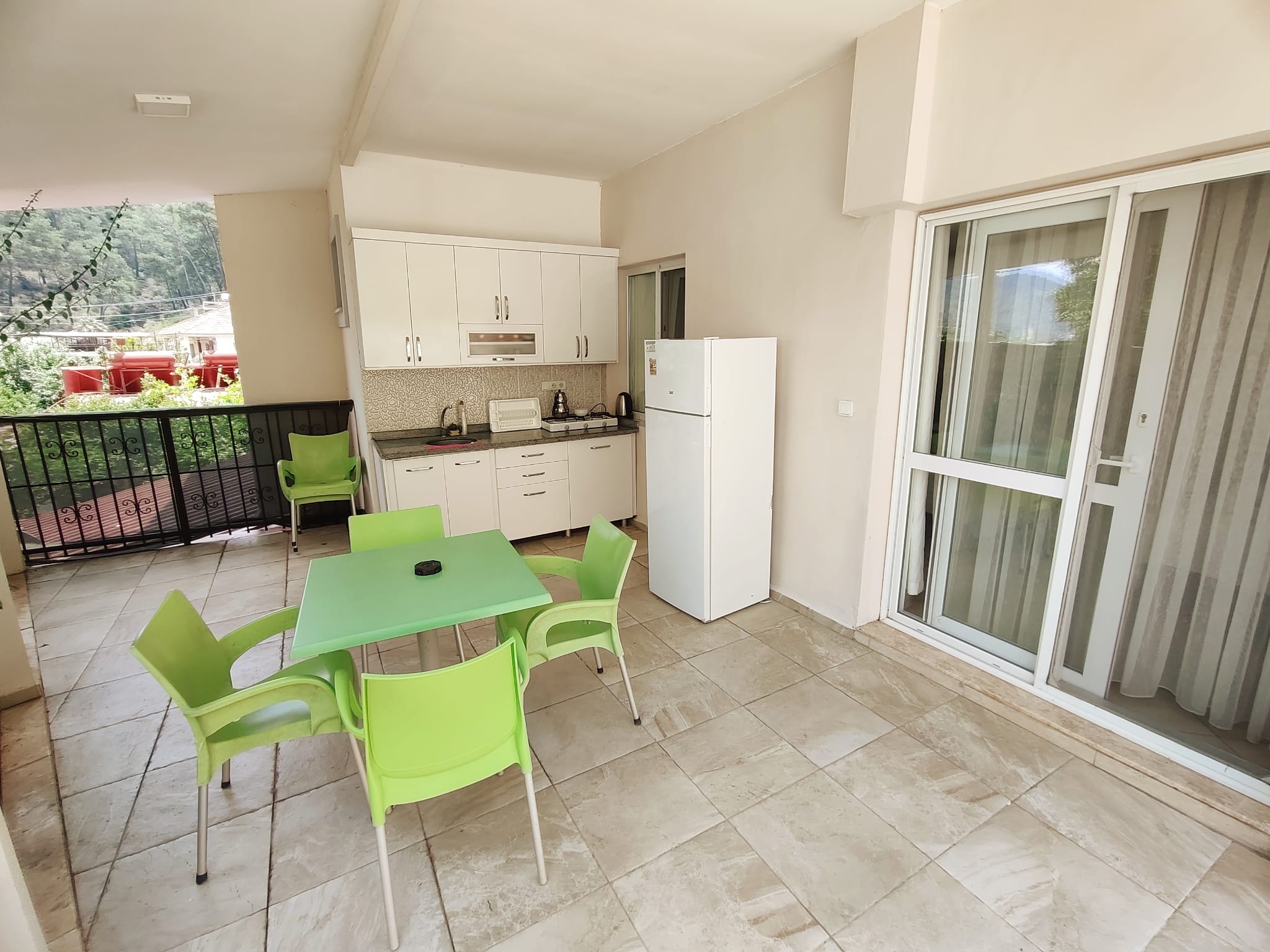 1+1 apart dairemiz modern ve fonksiyonel tasarımıyla aileler ve küçük gruplar için ideal bir konaklama sunar. Tam donanımlı mutfağı, geniş salonu ve ayrı yatak odasıyla ev konforunda bir tatil vaat ediyoruz. Salondaki çift kişilik çekyat ve ek tek kişilik yatak sayesinde 5 kişiye kadar konforlu konaklama imkanı. Eşsiz İnlice ve çam ormanları manzarasına sahip geniş terasında günün her saati keyifli vakit geçirebilirsiniz.