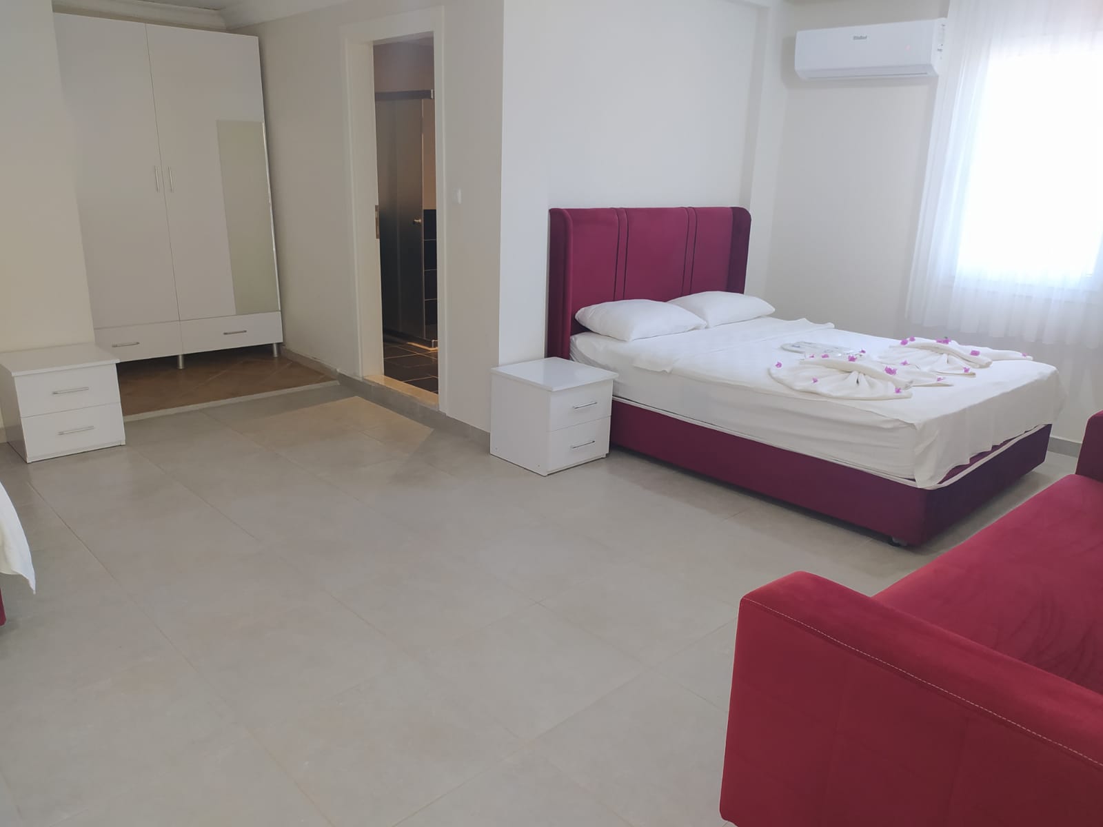 Bu odalarımız 4 tane vardır.Dairelerimiz modern ve fonksiyonel tasarımıyla aileler ve küçük gruplar için ideal bir konaklama sunar. Tam donanımlı mutfağı, geniş salonu ve ayrı yatak odasıyla ev konforunda bir tatil vaat ediyoruz. 2 odamızda 1 çift kişilik yatak + 1 tek kişilik yatak , diğer 2 odamız da ise 1 çift kişilik yatak + 2 tek kişilik yatak bulunmaktadır.Eşsiz İnlice ve çam ormanları manzarasına sahip geniş terasında günün her saati keyifli vakit geçirebilirsiniz.